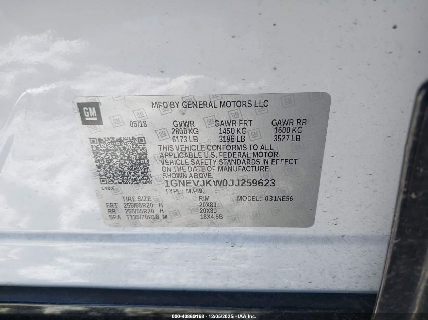 2018 CHEVROLET TRAVERSE 2018 року Бензин, 3.6, Повний привід, vin - 1GNEVJKW0JJ259623 з США