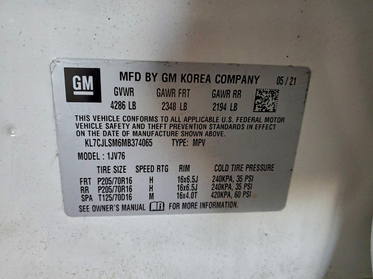 Колір БілийЦиліндри 4VIN KL7CJLSM6MB374065Стан Заводиться та їде (перевірено)Ушкодження Передня або задня