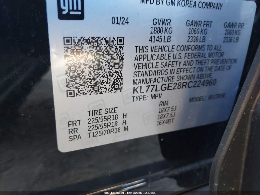 2024 CHEVROLET TRAX 2024 року Бензин, 1.2, Передній привід, vin - KL77LGE28RC224960 з США