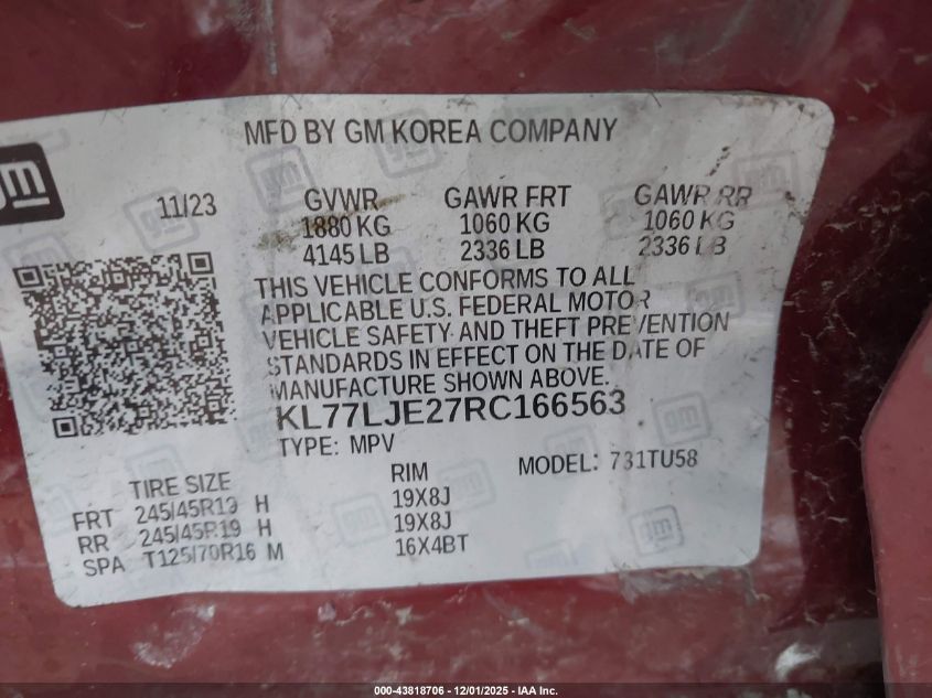 2024 CHEVROLET TRAX 2024 року Бензин, 1.2, Передній привід, vin - KL77LJE27RC166563 з США