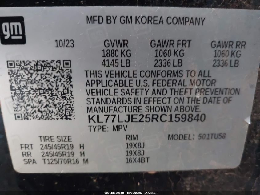 2024 CHEVROLET TRAX 2024 року Бензин, 1.2, Передній привід, vin - KL77LJE25RC159840 з США