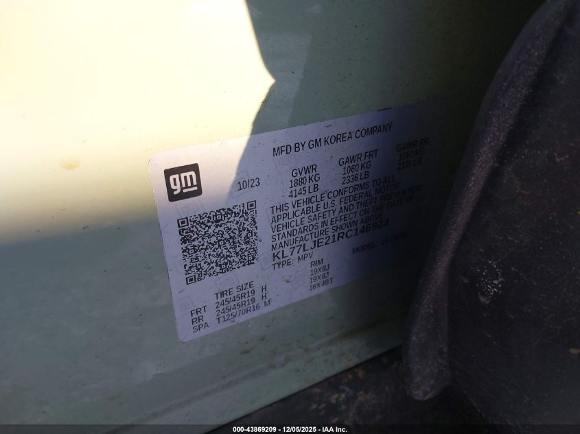 2024 CHEVROLET TRAX 2024 року Бензин, 1.2, Передній привід, vin - KL77LJE21RC146924 з США