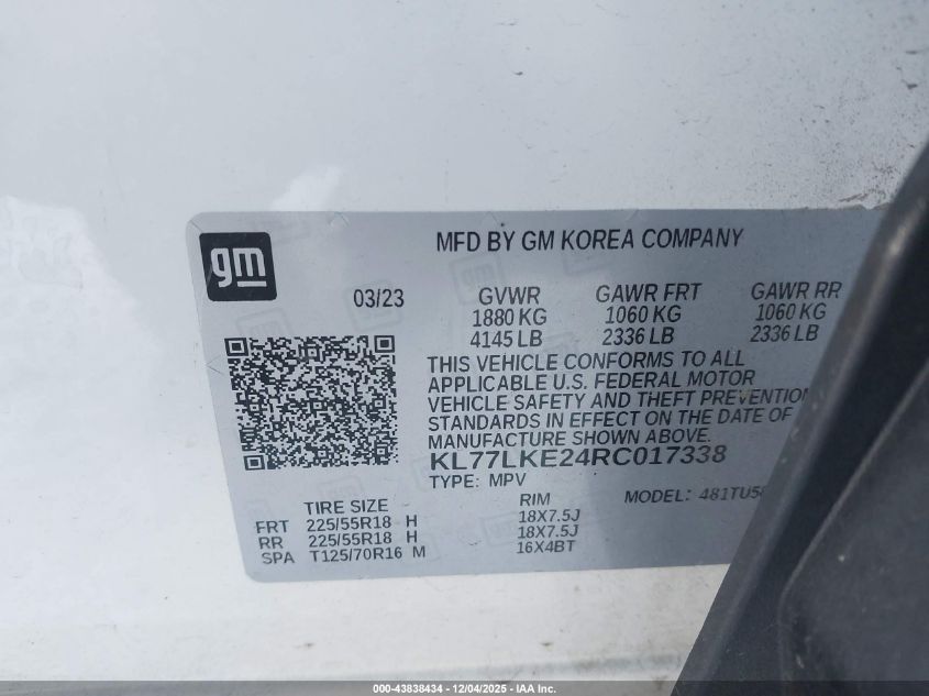 2024 CHEVROLET TRAX 2024 року Бензин, 1.2, Передній привід, vin - KL77LKE24RC017338 з США
