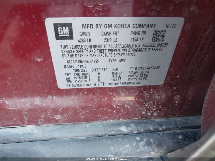 2022 CHEVROLET TRAX 2022 року Бензин, 1.4, Передній привід, vin - KL7CJLSM9NB561995 з США