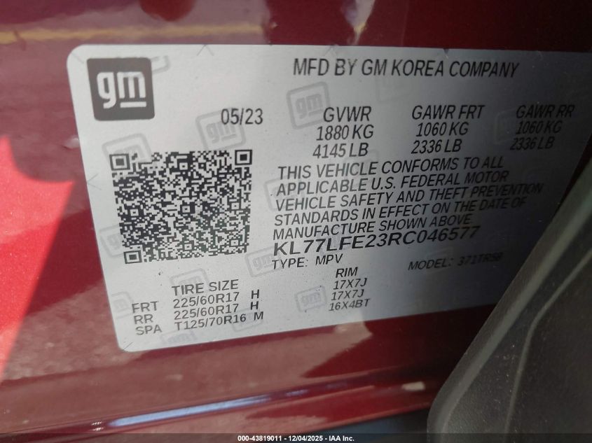 2024 CHEVROLET TRAX 2024 року Бензин, 1.2, Передній привід, vin - KL77LFE23RC046577 з США