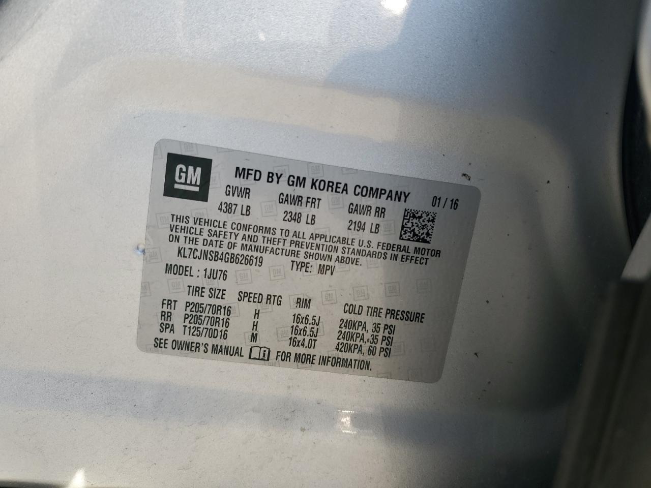 2016 CHEVROLET TRAX 2016 року Бензин, 1.4, Повний привід, vin - KL7CJNSB4GB626619 з США
