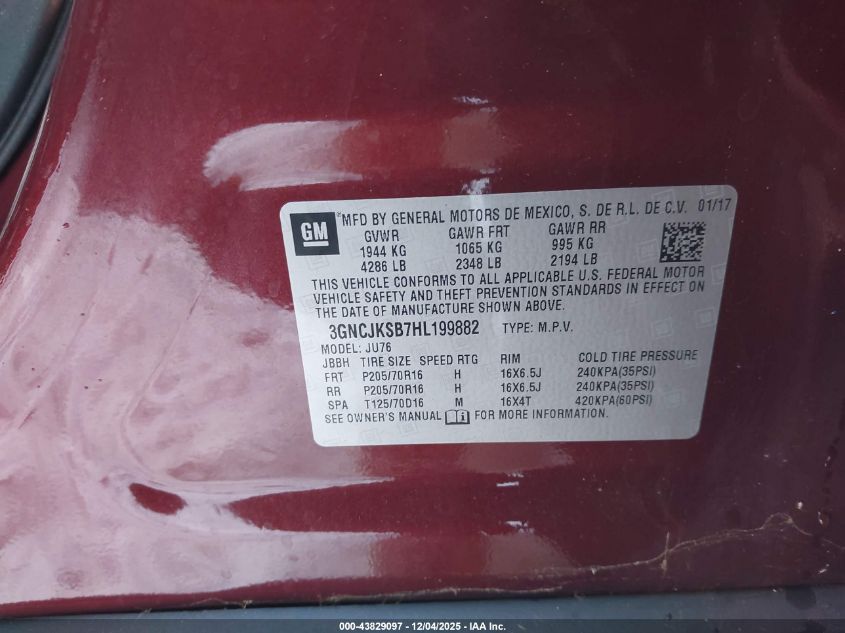 2017 CHEVROLET TRAX 2017 року Бензин, 1.4, Передній привід, vin - 3GNCJKSB7HL199882 з США
