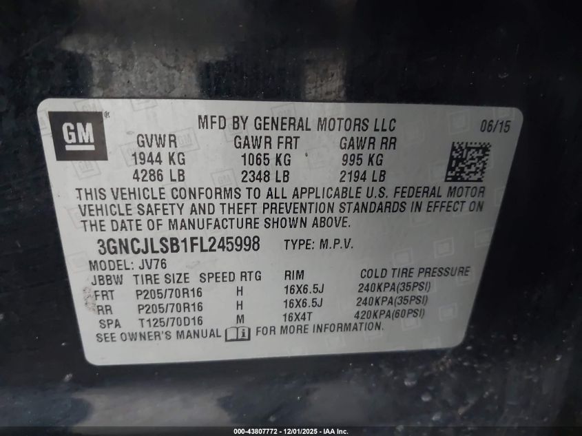2015 CHEVROLET TRAX 1LT