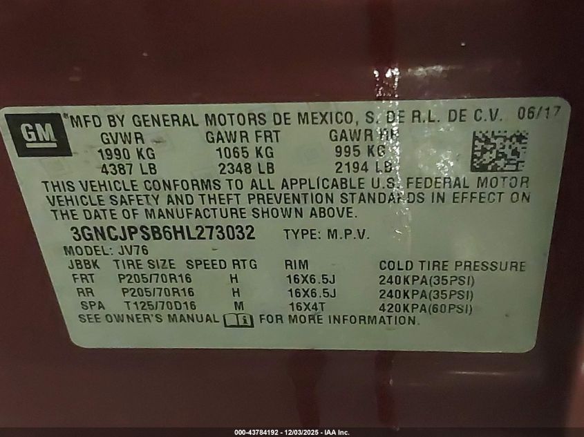 2017 CHEVROLET TRAX 2017 року Бензин, 1.4, Повний привід, vin - 3GNCJPSB6HL273032 з США