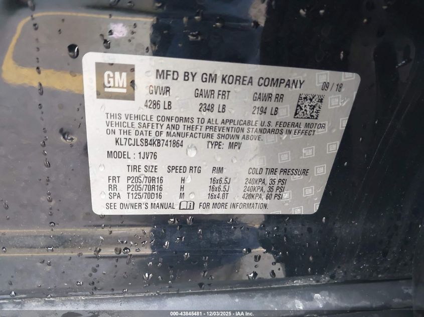 2019 CHEVROLET TRAX 2019 року Бензин, 1.4, Передній привід, vin - KL7CJLSB4KB741864 з США