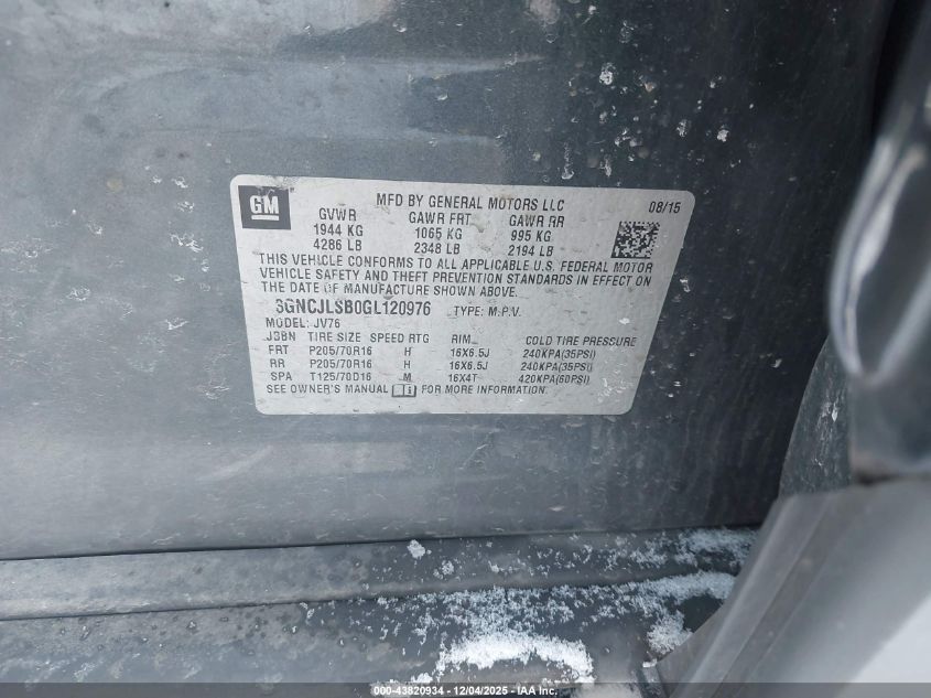 2016 CHEVROLET TRAX 2016 року Бензин, 1.4, Передній привід, vin - 3GNCJLSB0GL120976 з США