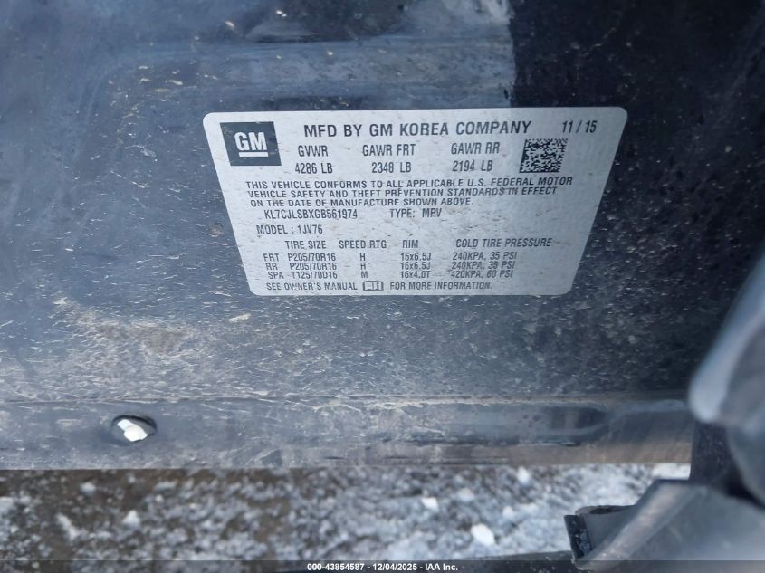 2016 CHEVROLET TRAX 2016 року Бензин, 1.4, Передній привід, vin - KL7CJLSBXGB561974 з США
