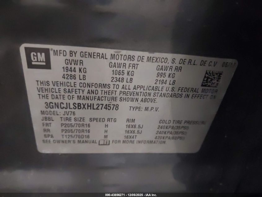 2017 CHEVROLET TRAX 2017 року Бензин, 1.4, Передній привід, vin - 3GNCJLSBXHL274578 з США