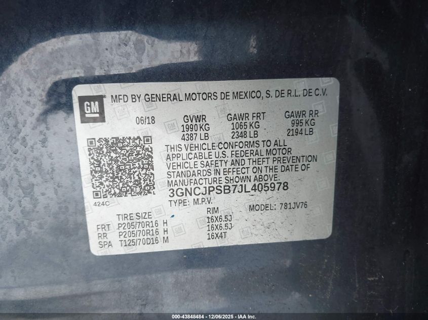 2018 CHEVROLET TRAX 2018 року Бензин, 1.4, Повний привід, vin - 3GNCJPSB7JL405978 з США
