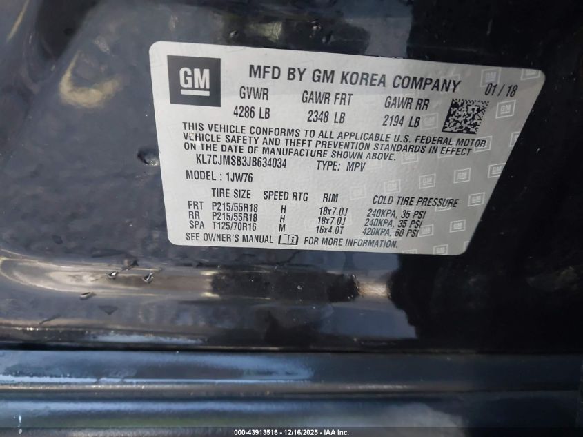 2018 CHEVROLET TRAX 2018 року Бензин, 1.4, Передній привід, vin - KL7CJMSB3JB634034 з США