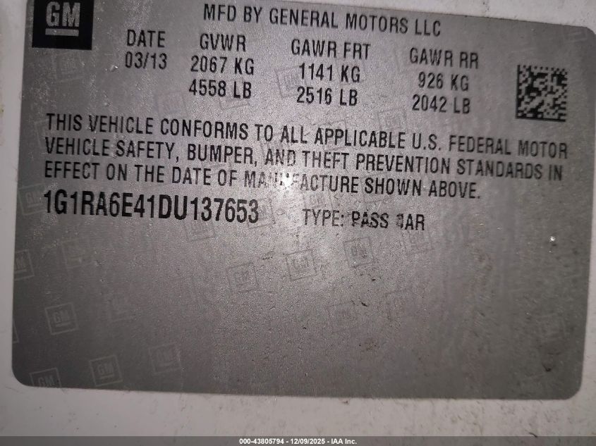 Колір БілийЦиліндри 4Привід Передній привідVIN 1G1RA6E41DU137653Стан НевідомоУшкодження Задня права AutoRIA