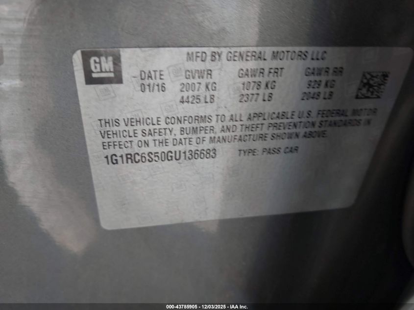 2016 CHEVROLET VOLT 2016 року Гібрид, 1.5, Передній привід, vin - 1G1RC6S50GU136683 з США