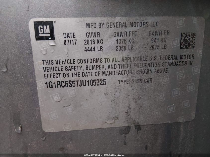 2018 CHEVROLET VOLT 2018 року Гібрид, 1.5, Передній привід, vin - 1G1RC6S57JU105325 з США