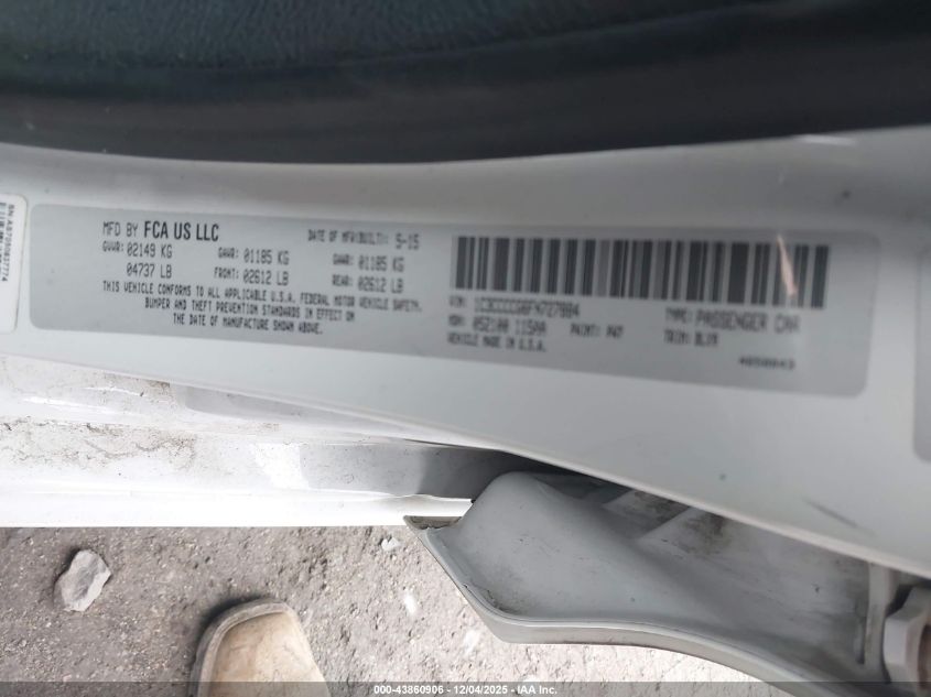 2015 CHRYSLER 200 2015 року Бензин, 3.6, Передній привід, vin - 1C3CCCCG6FN727884 з США
