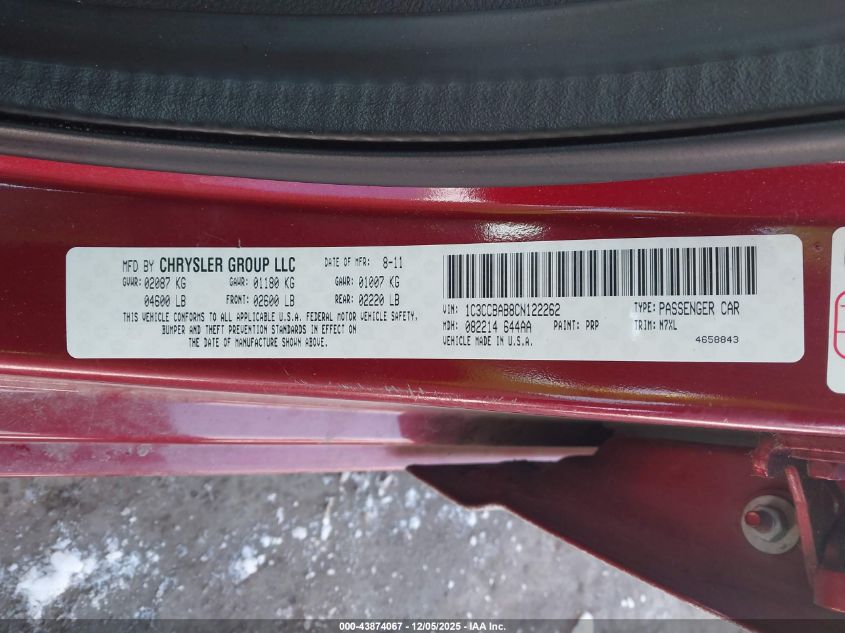 2012 CHRYSLER 200 2012 року Бензин, 2.4, Передній привід, vin - 1C3CCBAB8CN122262 з США