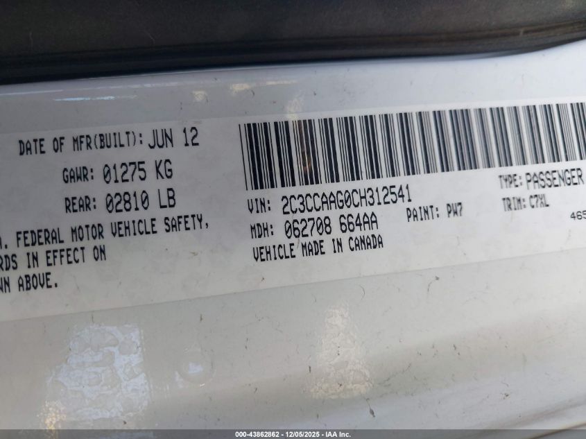 Колір СинійЦиліндри 6Привід Задній привідVIN 2C3CCAAG0CH312541Стан Заводиться та їде (перевірено)Ушкодження Передня або задня AutoRIA