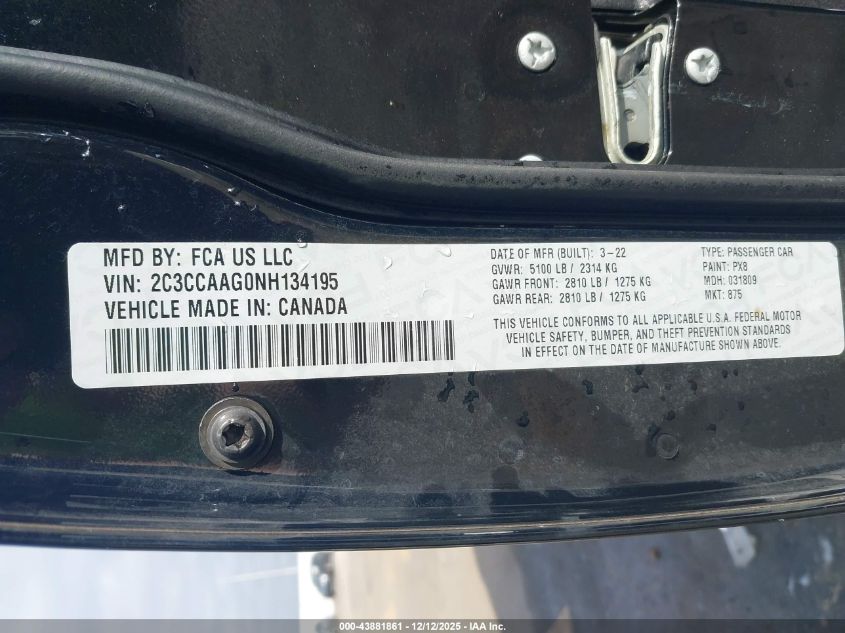 2022 CHRYSLER 300 2022 року Бензин, 3.6, Задній привід, vin - 2C3CCAAG0N8134195 з США
