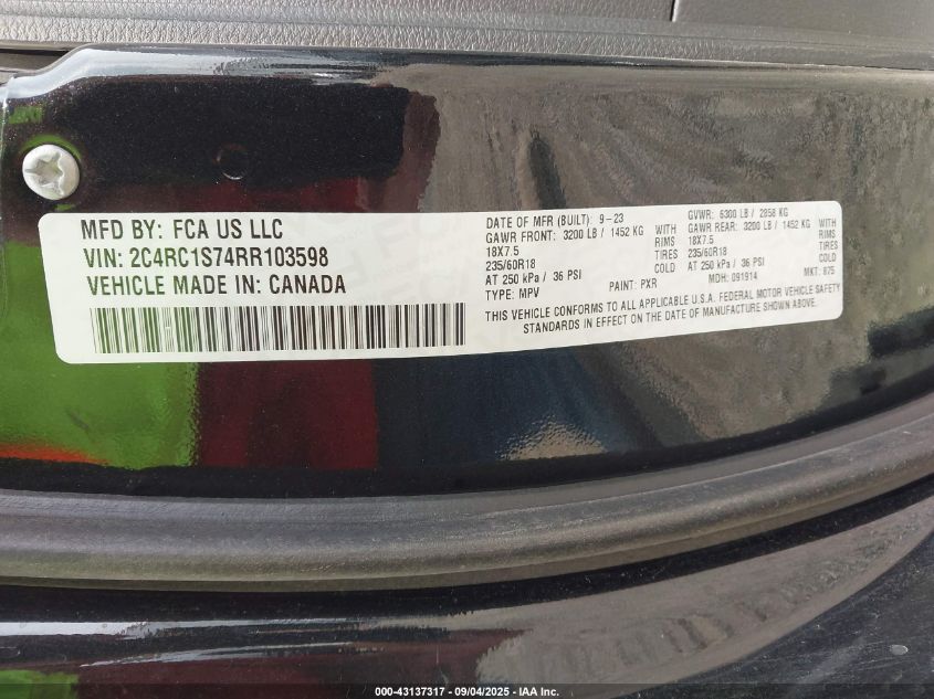 2024 CHRYSLER PACIFICA 2024 року Гібрид, 3.6, Передній привід, vin - 2C4RC1S74RR103598 з США