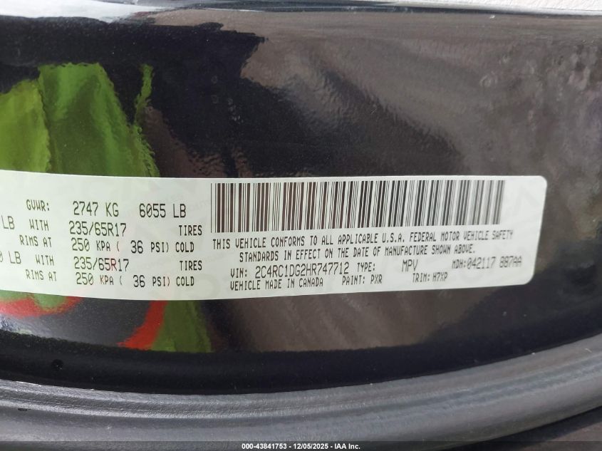 Колір ЧорнийЦиліндри 6Привід Передній привідVIN 2C4RC1DG2HR747712Стан Заводиться та їде (перевірено)Ушкодження Град AutoRIA