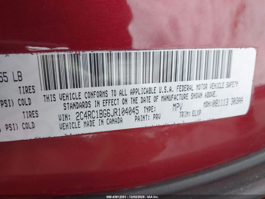 Колір БордовийЦиліндри 6Привід Передній привідVIN 2C4RC1BG6JR104045Стан Заводиться та їде (перевірено)Ушкодження Передня або задняДата аукціону 2025-12-10 AutoRIA