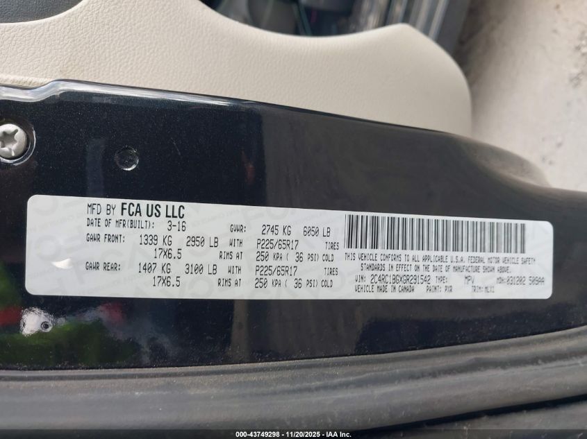 2016 CHRYSLER TOWN & COUNTRY TOURING L