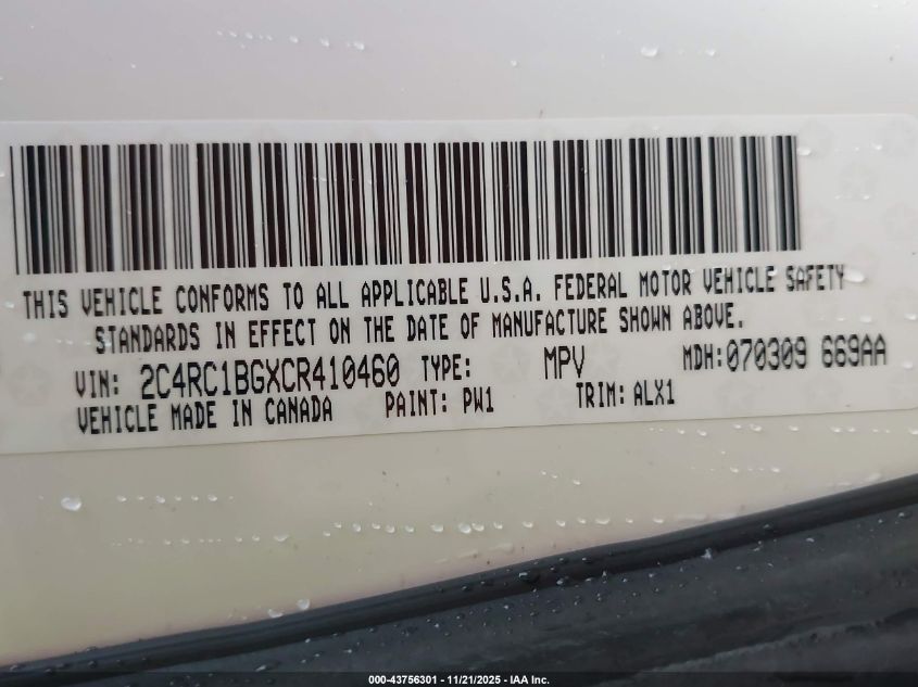Колір БілийЦиліндри 6Привід Передній привідVIN 2C4RC1BGXCR410460Стан Заводиться та їде (перевірено)Ушкодження Права сторона AutoRIA