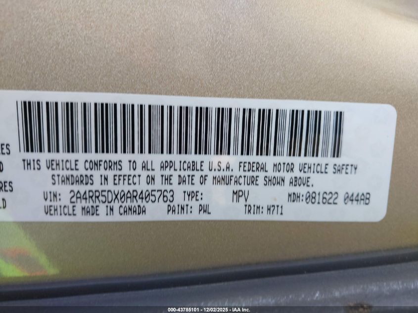 Колір ЗолотийЦиліндри 6Привід Передній привідVIN 2A4RR5DX0AR405763Стан Заводиться та їде (перевірено)Ушкодження Передня права