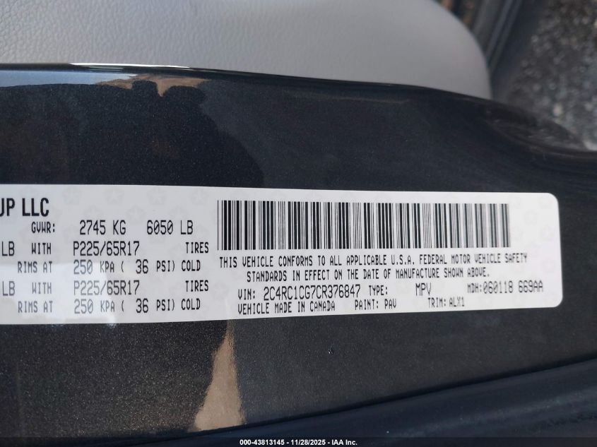 Колір ЧорнийЦиліндри 6Привід Передній привідVIN 2C4RC1CG7CR376847Стан СтаціонарноУшкодження Передня або задня AutoRIA