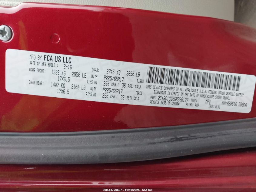 2016 CHRYSLER TOWN & COUNTRY TOURING L