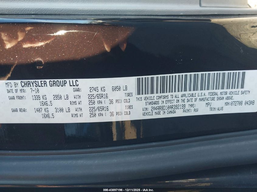 2010 CHRYSLER TOWN & COUNTRY LIMITED
