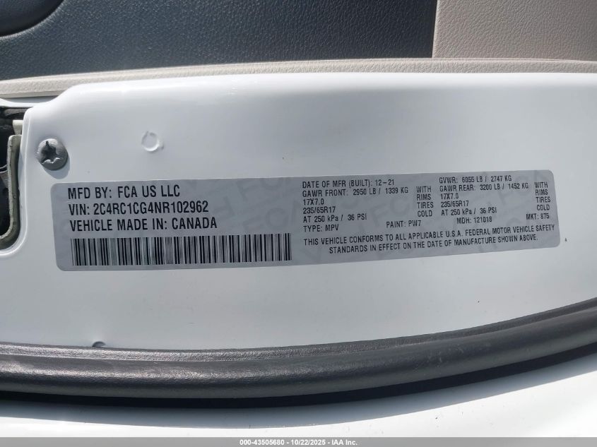 Колір БілийЦиліндри 6Привід Передній привідVIN 2C4RC1CG4NR102962Стан Заводиться та їде (перевірено)Ушкодження Передня або задня