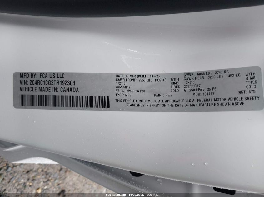 Колір БілийЦиліндри 6Привід Передній привідVIN 2C4RC1CG2TR192304Стан Заводиться та їде (перевірено)Ушкодження Немає