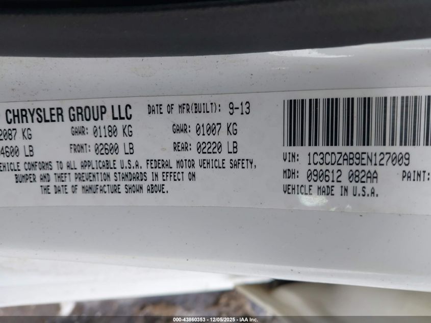 2014 DODGE AVENGER 2014 року Бензин, 2.4, Передній привід, vin - 1C3CDZAB9EN127009 з США
