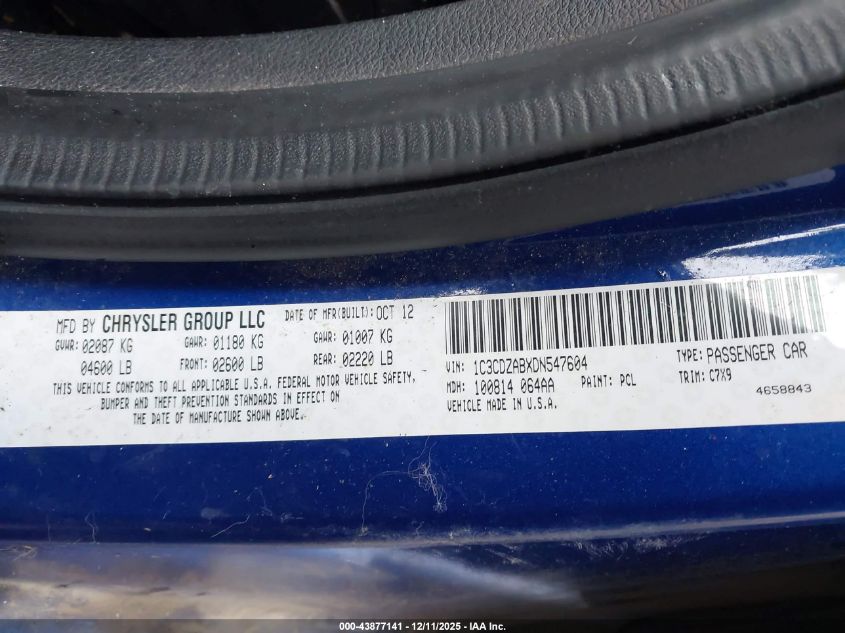 Колір СинійЦиліндри 4Привід Передній привідVIN 1C3CDZABXDN547604Стан СтаціонарноУшкодження Передня або задня AutoRIA