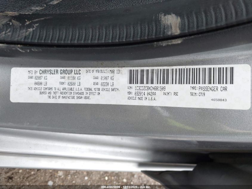 Колір СрібнийЦиліндри 4Привід Передній привідVIN 1C3CDZCBXDN681509Стан Заводиться та їде (перевірено)Ушкодження Права сторона AutoRIA