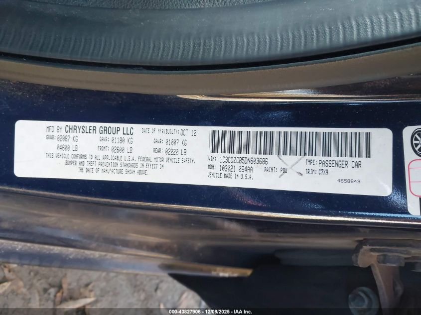 Колір СинійЦиліндри 4Привід Передній привідVIN 1C3CDZCB5DN603686Стан СтаціонарноУшкодження Звичайний зносДата аукціону 2025-12-16 AutoRIA
