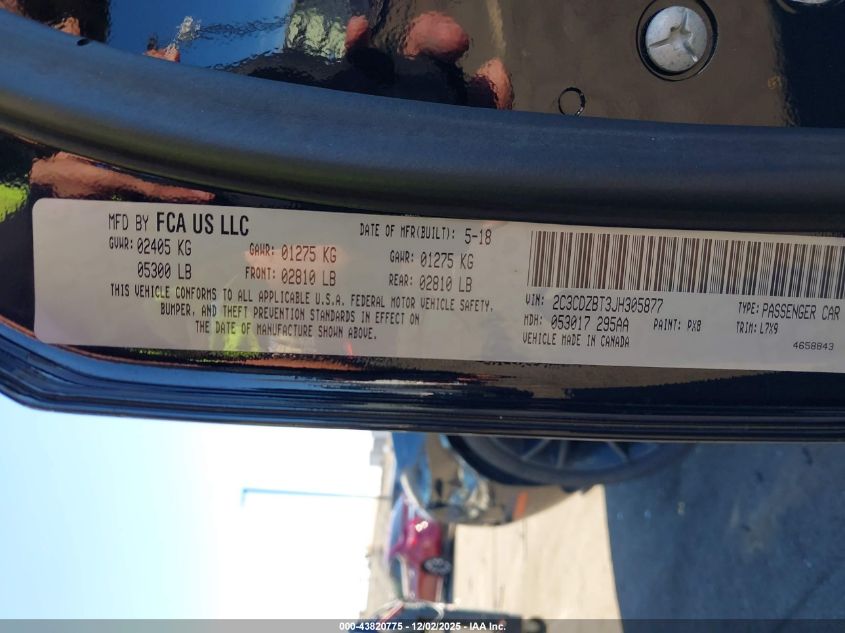 2018 DODGE CHALLENGER 2018 року Бензин, 5.7, Задній привід, vin - 2C3CDZBT3JH305877 з США