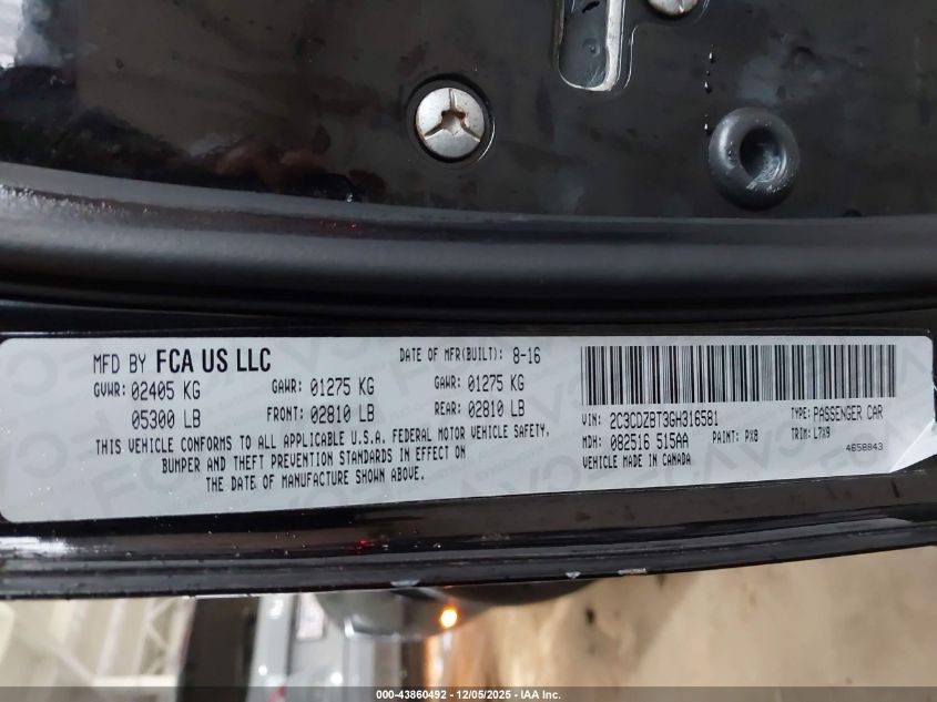 2016 DODGE CHALLENGER 2016 року Бензин, 5.7, Задній привід, vin - 2C3CDZBT3GH316581 з США
