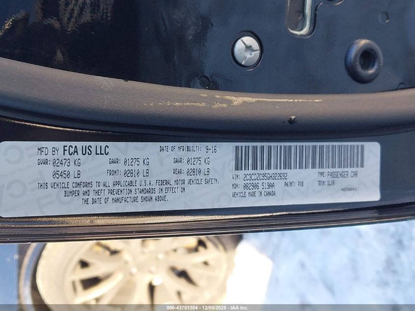 Колір ЧорнийЦиліндри 8Привід Задній привідVIN 2C3CDZC95GH322692Стан СтаціонарноУшкодження Невідомо AutoRIA
