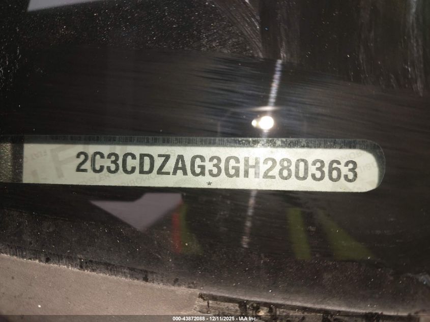 Колір СірийЦиліндри 6Привід Задній привідVIN 2C3CDZAG3GH280363Стан Заводиться та їде (перевірено)Ушкодження Передня або задня AutoRIA