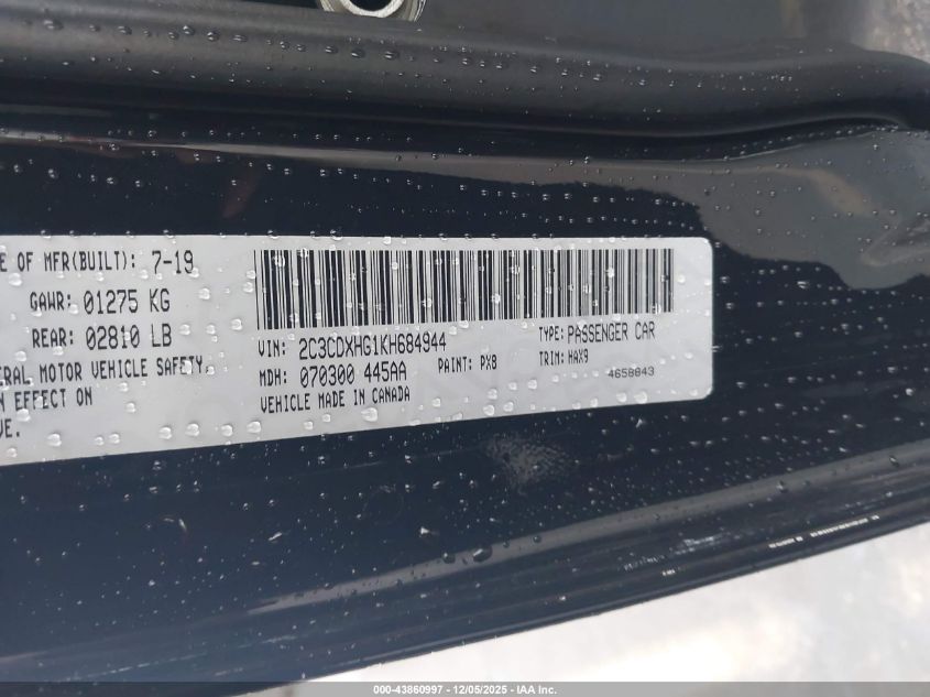 2019 DODGE CHARGER 2019 року Бензин, 3.6, Задній привід, vin - 2C3CDXHG1KH684944 з США