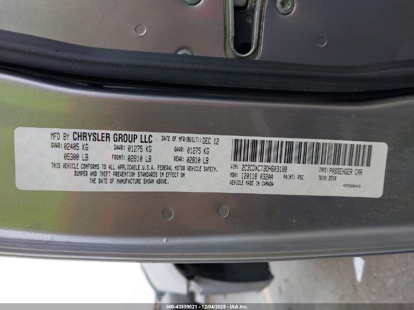 2013 DODGE CHARGER 2013 року Бензин, 5.7, Задній привід, vin - 2C3CDXCT3DH603188 з США