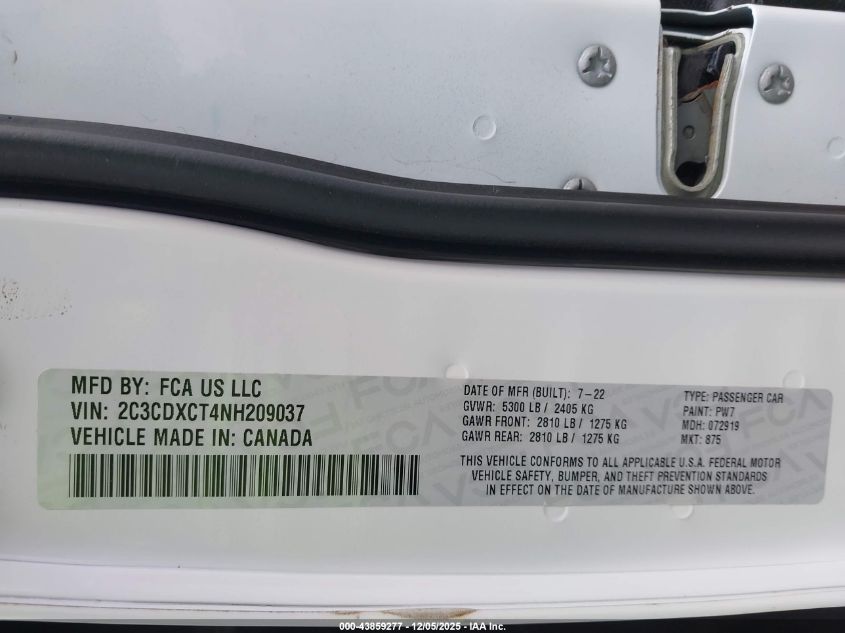 2022 DODGE CHARGER 2022 року Бензин, 5.7, Задній привід, vin - 2C3CDXCT4NH209037 з США