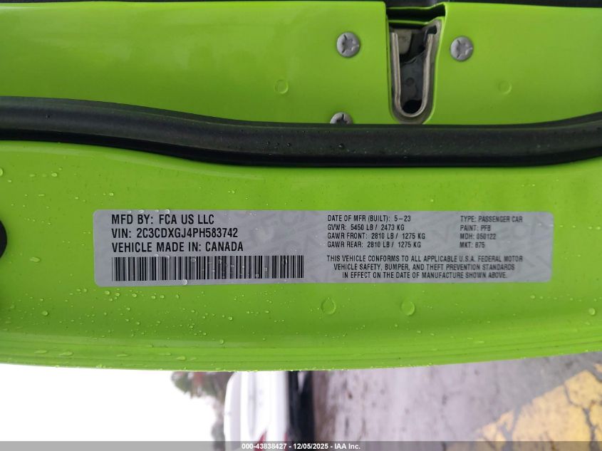 2023 DODGE CHARGER 2023 року Бензин, 6.4, Задній привід, vin - 2C3CDXGJ4PH583742 з США