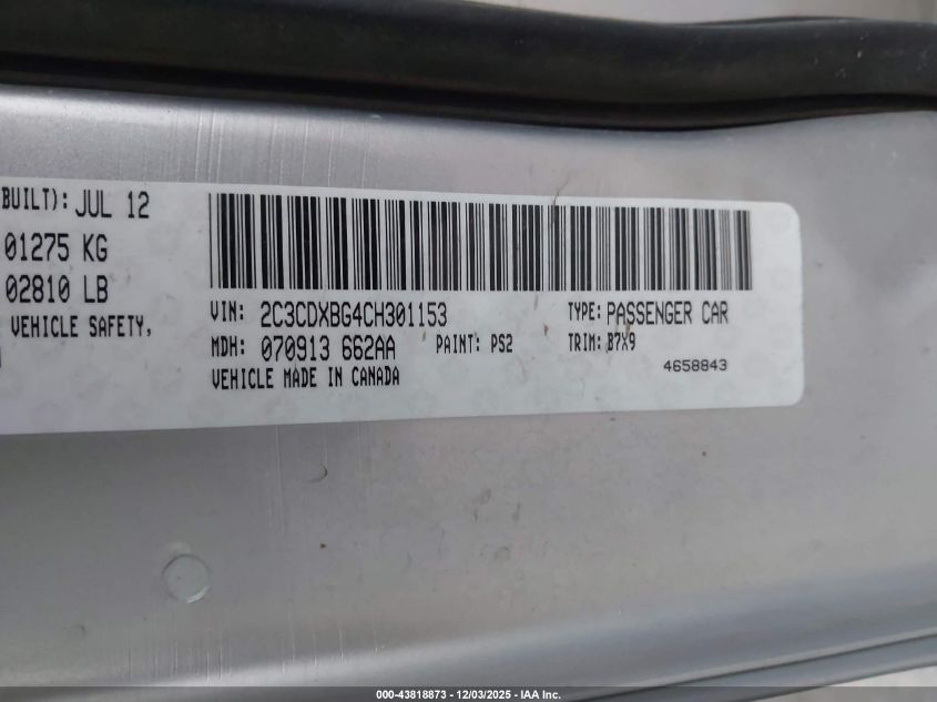 2012 DODGE CHARGER 2012 року Бензин, 3.6, Задній привід, vin - 2C3CDXBG4CH301153 з США
